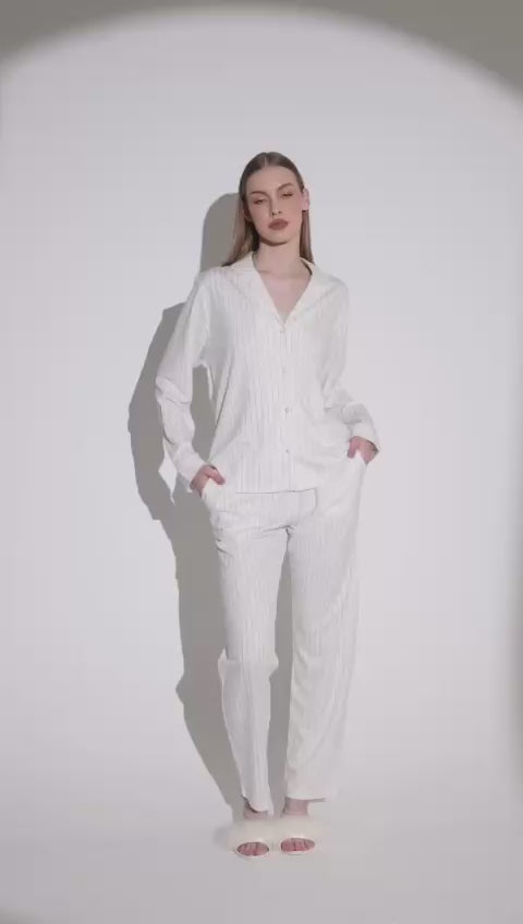 Pijama Takımı %100 Pamuk Kumaştan Üretilmiştir Beyaz renktir Esnektir Gömlek ve Pantolondan Oluşmaktadır Gömleği Önden Düğmelidir  Gömleği V Yakadır Pantolonun Beli Lastiklidir Ilık Ütülenebilir Makinada 30 derecede Yıkanabilir Hijyen Kuralları Gereği...